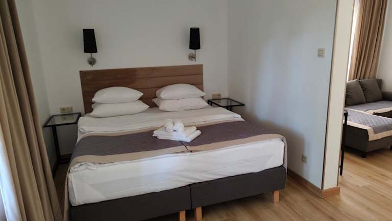 Die Ferienanlage Fala bietet eine heimelige Atmosphäre mit vielfältigen Annehmlichkeiten wie einer Bar, Tennisplatz und einem Kinderclub. Zusätzlich stehen ein Innenpool, Sauna, Whirlpool und ein türkisches Dampfbad zur Verfügung.