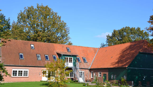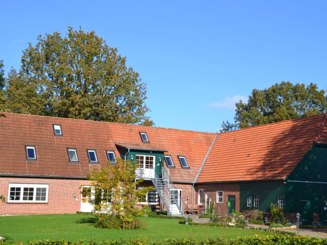 Ein aktiv geführter landwirtschaftlicher Betrieb mit 4 sehr unterschiedlichen Feriendomizielen. Alle in einem Haus und doch mit viel Platz für Privatsphäre oder zum Treffen und gemeinsamen verweilen auf dem Spielplatz, am Lagerfeuer, in der geräumigen Spieldiele, bei einer Oldtimer Treckertour oder auf einem Dinocartripp. Hund, Katzen und Kleintiere dürfen gestreichelt, gefüttert oder ausgemistet werden. Großzügige Wohnungen Eisvogel und Graureiher mit WM und Trockner und klein aber gemütlich in Stockente und Teichhuhn, hier findet jeder den richtigen Platz für seinen Urlaub. Landwirtschaft erklären lassen, Geheimrezepte teilen, die schöne Gegend erkunden oder einfach die Körper und Gast entspannen!