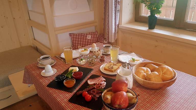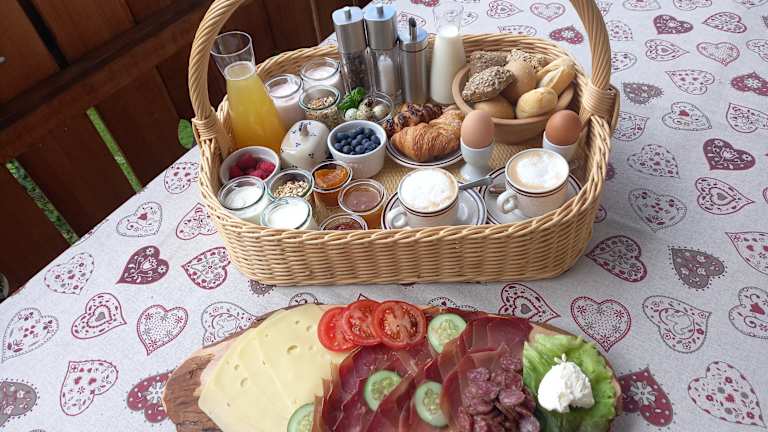 Beim Frühstück werden verschiedene Optionen angeboten, darunter kontinentale, italienische oder vegetarische Gerichte.