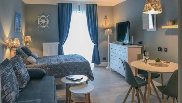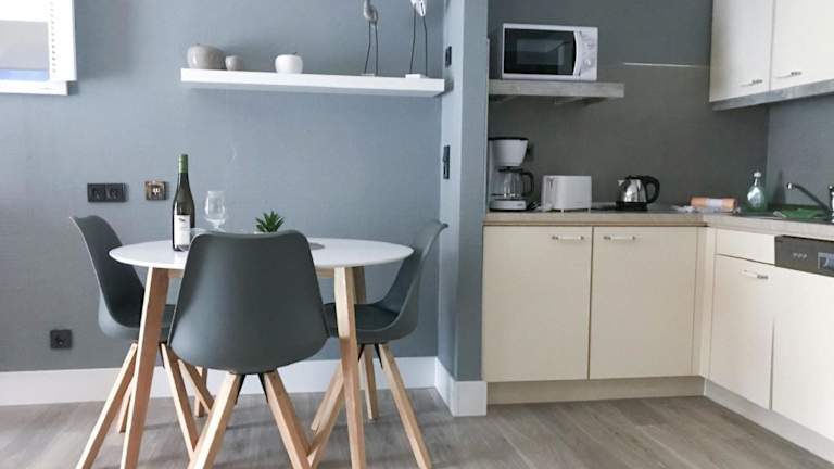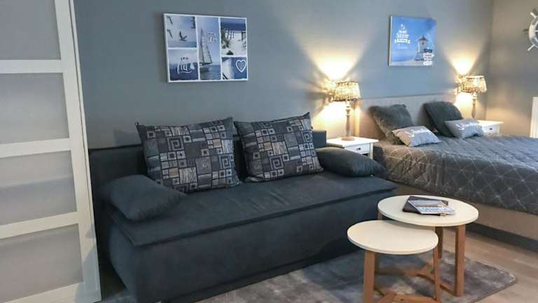 Das komfortable 1-Raum Appartement ist ausgestattet mit einem Wohnzimmer sowie einer voll ausgestatteten Küche, die mit einem Kühlschrank und einem Geschirrspüler versehen ist. Handtücher und Bettwäsche werden zur Verfügung gestellt. Die Unterkunft umfasst auch ein Spa- und Wellnesscenter mit Sauna, türkischem Dampfbad und einem Innenpool. Für Familienspass sorgt der hauseigene Kinderspielplatz.