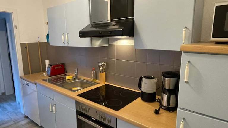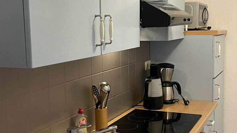 Die Unterkunft verfügt über eine voll ausgestattete Küche mit Kühlschrank, Geschirrspüler, Ofen, Mikrowelle, Herdplatte sowie einer Kaffeemaschine und einem Wasserkocher, was die Zubereitung von Mahlzeiten ermöglicht.