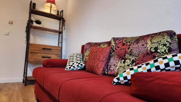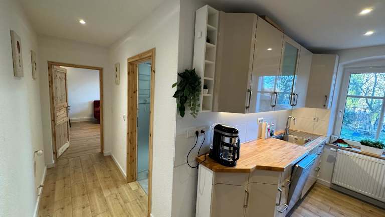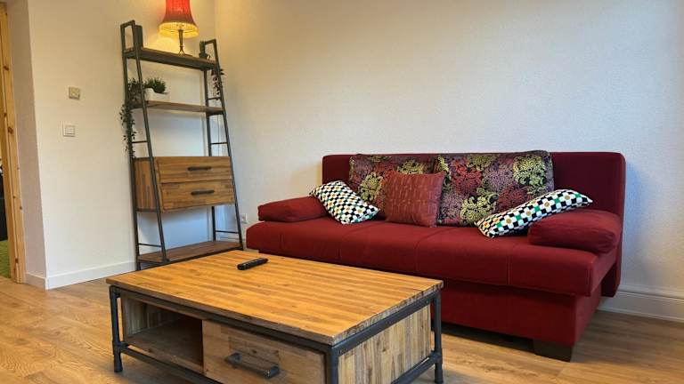 Die Ferienwohnung verfügt über ein Schlafzimmer, eine Küche mit Kühlschrank und Geschirrspüler sowie einen Flachbild-TV und Sitzbereich. Das Badezimmer ist mit einer Dusche ausgestattet, und Handtücher sowie Bettwäsche stehen zur Verfügung.