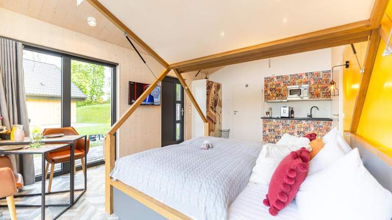 Die Ferienhäuser Saalemaxx bieten eine heimelige Atmosphäre mit Wohneinheiten, die über eine Veranda oder einen Patio verfügen. WLAN steht in der gesamten Unterkunft kostenlos zur Verfügung. Jede Wohneinheit besitzt eine Terrasse, einen Flachbild-TV, Sitzplätze, eine gut ausgestattete Küchenzeile sowie ein eigenes Badezimmer mit kostenlosen Pflegeprodukten.