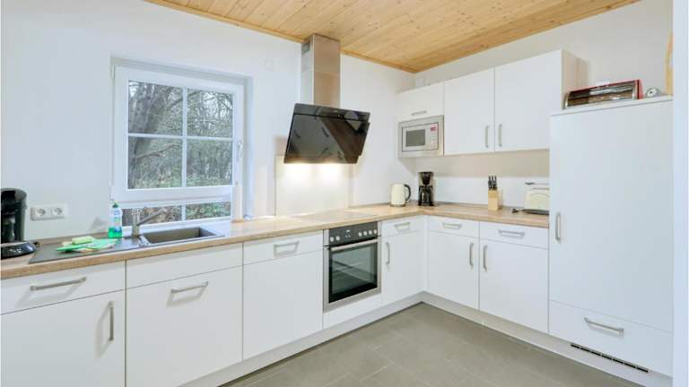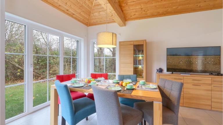 Das Ferienhaus verfügt über zwei Schlafzimmer, ein Wohnzimmer, ein Esszimmer und eine vollständig ausgestattete Küche, die mit einem Kühlschrank, einem Geschirrspüler und einer Mikrowelle ausgestattet ist. Zudem stehen ein TV, ein Blu-ray-Player und ein DVD-Player zu Verfügung. Das Badezimmer ist mit einer Dusche ausgestattet.