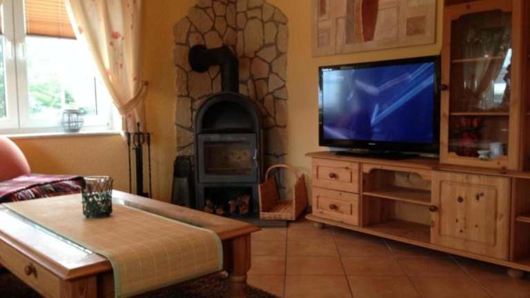 Das Ferienhaus ist ausgestattet mit 2 Schlafzimmern, einem TV und einer voll ausgestatteten Küche. Diese beinhaltet einen Kühlschrank, einen Geschirrspüler, eine Waschmaschine, einen Ofen und eine Mikrowelle.
