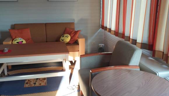 Das klimatisierte Apartment im Ferienhaus 55 verfügt über 3 Schlafzimmer, ein Wohnzimmer, eine voll ausgestattete Küche mit Kühlschrank und Kaffeemaschine sowie 2 Badezimmer mit Dusche und Haartrockner. Ein Flachbild-Sat-TV und ein CD-Player sind ebenfalls vorhanden, um Ihnen Unterhaltung zu bieten.