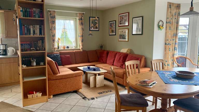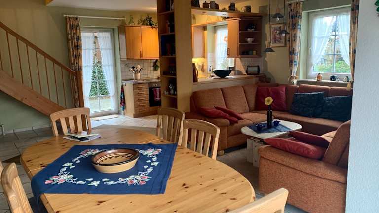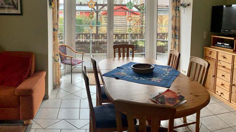 Das Ferienhaus ist ausgestattet mit 3 Schlafzimmern und 2 Badezimmern. Bettwäsche und Handtücher sind vorhanden. Ein Flachbild-TV mit Satellitenkanälen, ein Essbereich sowie eine voll ausgestattete Küche bieten Bequemlichkeit für die Gäste. Auf der Terrasse geniessen die Gäste den Gartenblick.