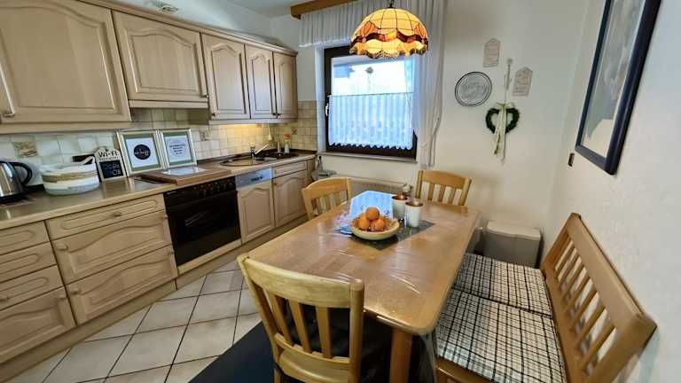Eine voll ausgestattete Küche ist vorhanden, ideal für die Zubereitung eigener Mahlzeiten. Zudem bietet der Garten Platz für gemütliche Grillabende.