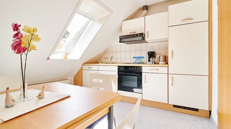 Das Ferienhaus bietet eine Küchenzeile mit Kühlschrank, Geschirrspüler, Ofen und Kaffeemaschine, die den Gästen eine Selbstverpflegung ermöglicht. Es sind jedoch keine Informationen zu kulinarischen Angeboten in Form von Restaurants vorhanden.