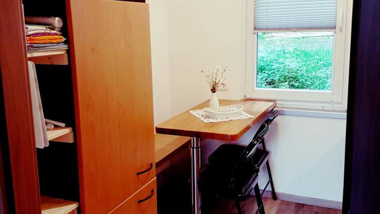 Die Unterkunft liegt in ruhiger Umgebung am Badesee Schönsee und ist etwa 38 km von Eisenach entfernt. Die Anfahrt ist sowohl mit dem Auto als auch mit öffentlichen Verkehrsmitteln gut erreichbar. In der Nähe befinden sich Wanderwege und Möglichkeiten für Wasseraktivitäten.