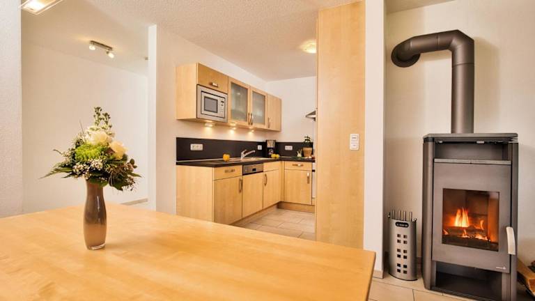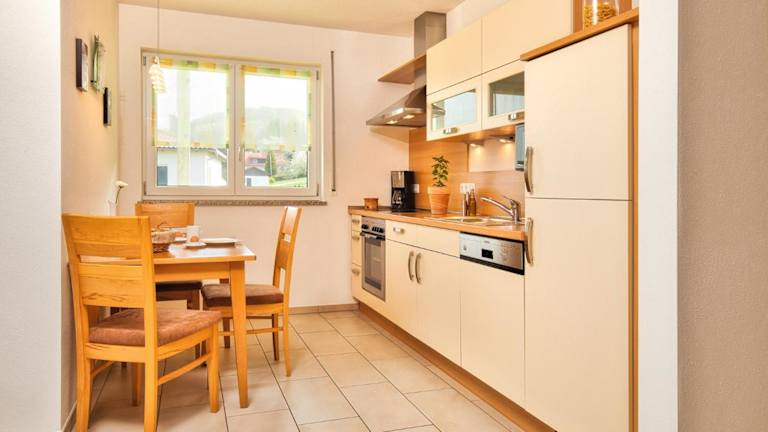 In jeder Wohneinheit gibt es eine voll ausgestattete Küchenzeile mit einem Esstisch, Kühlschrank, Geschirrspüler, Ofen, Kaffeemaschine und Wasserkocher. Verpflegungsangebote sind nicht spezifisch erwähnt, jedoch steht eine persönliche Küche zur Verfügung, um eigene Mahlzeiten zuzubereiten.