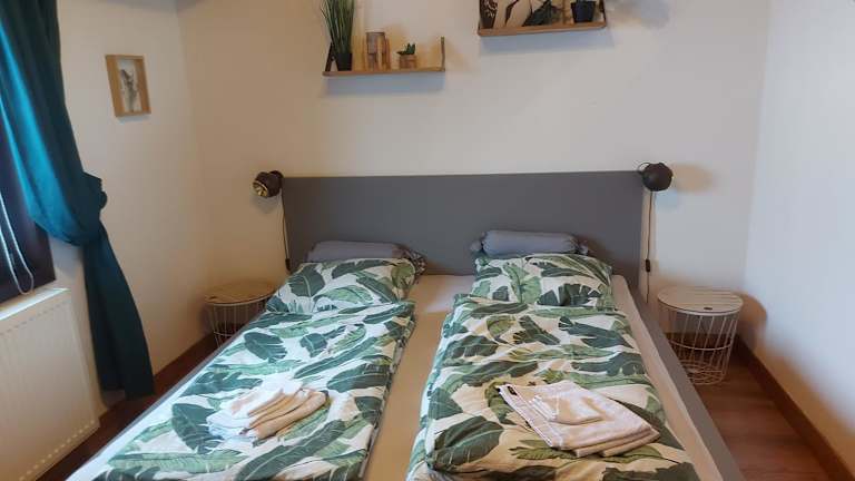 Das Ferienhaus besteht aus 2 Schlafzimmern, einem Wohnzimmer sowie einer voll ausgestatteten Küche mit Kühlschrank und Kaffeemaschine. Ein Badezimmer mit Dusche und Haartrockner ist ebenfalls vorhanden. Handtücher und Bettwäsche werden zur Verfügung gestellt. Zudem ist eine Terrasse verfügbar.