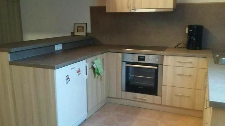 In der voll ausgestatteten Küche des Ferienhauses können die Gäste selbständig kochen. Die Ausstattung umfasst einen Kühlschrank, einen Geschirrspüler, einen Ofen, eine Herdplatte, einen Toaster, eine Kaffeemaschine und einen Wasserkocher. Es sind keine Verpflegungsmöglichkeiten vor Ort beschrieben.