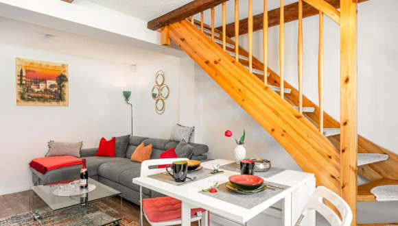 Das Ferienhaus hat ein Schlafzimmer, ein Wohnzimmer und eine gut ausgestattete Küche mit Kühlschrank und Geschirrspüler. Handtücher und Bettwäsche werden zur Verfügung gestellt.