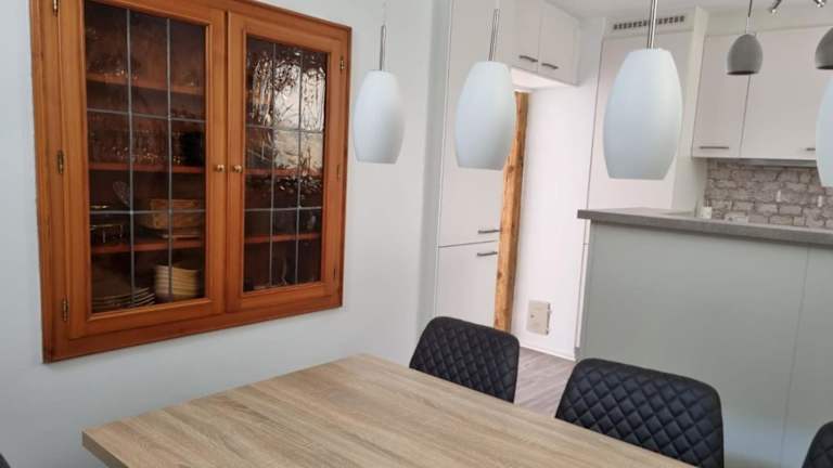 Das Ferienhaus besteht aus 3 Schlafzimmern, einem Wohnzimmer sowie einer voll ausgestatteten Küche mit Kühlschrank und Kaffeemaschine. Es bietet 2 Badezimmer mit Dusche und Haartrockner. Handtücher und Bettwäsche werden bereitgestellt.