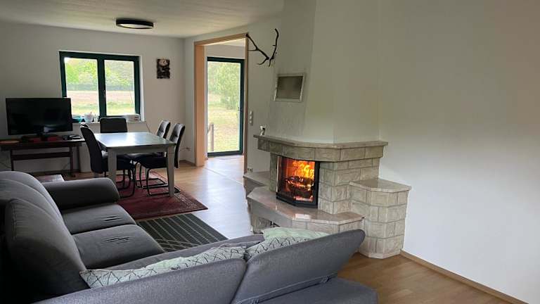 Das Ferienhaus am Waldesrand bietet eine gemütliche Atmosphäre mit einem Garten und Grillmöglichkeiten. Es handelt sich um ein Chalet mit einem Schlafzimmer und bietet Einrichtungen wie kostenloses WLAN in der gesamten Unterkunft und Nichtraucherzonen.