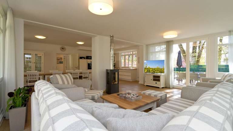 Das Ferienhaus verfügt über 5 Schlafzimmer und bietet Zugang zu einem Wohnzimmer mit Flachbild-TV. Die Küchenzeile ist voll ausgestattet mit Kühlschrank und Geschirrspüler. Es stehen 3 Badezimmer mit Dusche zur Verfügung. Handtücher und Bettwäsche werden bereitgestellt.