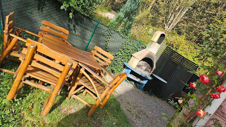 Es gibt eine gut ausgestattete Küche zur Selbstversorgung. Zudem steht ein Grill zur Verfügung, was eine gesellige Atmosphäre zum Zubereiten von Mahlzeiten im Freien schafft.