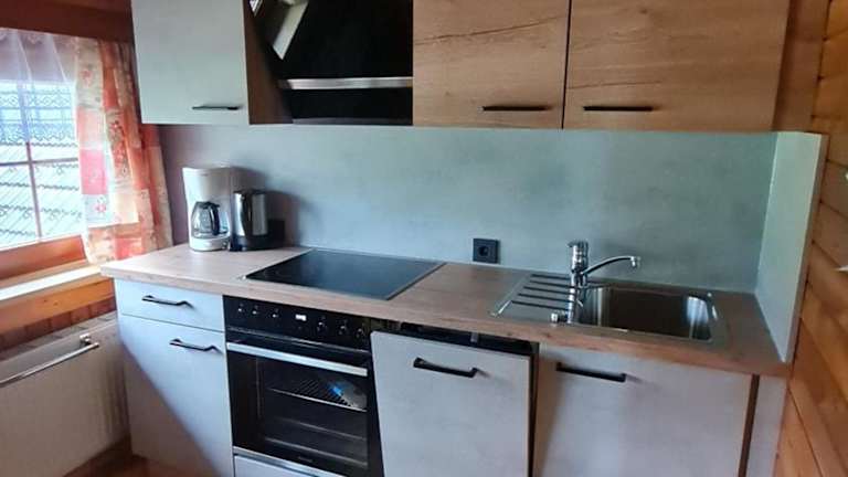 Es besteht die Möglichkeit, Essenslieferungen in die Unterkunft zu bestellen. Zudem sind im Ferienhaus eine voll ausgestattete Küche sowie ein Essbereich vorhanden.