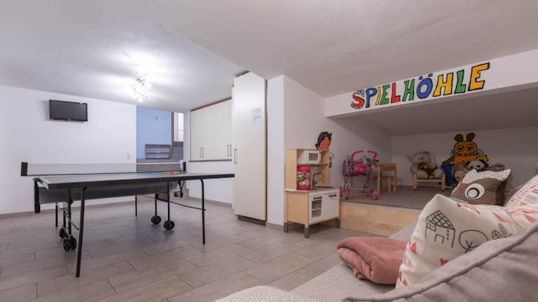 Fitnessraum mit Infrarotkabine, Crosstrainer und kleiner Trainingstation. Das Ferienhaus Ban Brösign ist mit einer "Spielhöhe" ausgestattet: mit Spieküche, Lego Duplo, verschiedene Spiele, Bücher, Malsachen, Baby Björn, Stapelsteine, Tischtennis und Dart. Im Garten finden Sie Spielgeräte und ein kleines Klettergerüst. In unserem "Erlebnisstodl" - Abenteuer.Erlebnis.Reich. finden Sie einen Kreativraum zum Basteln und Malen, eine Turnwelt mit Boulderbereich und einen Spieleraum mit Playmobil und Lego. (für Kinder von 0 - 8 Jahre). Im unteren Bereich befindet sich eine kleiner Indoorbereich zum Turnen, Fußball spielen oder für eine Partie Tischtennis. Der Erlebnisstodl ist nicht automatisch inkudiert und muss vorab gegen eine keine Gebühr gebucht werden. Nur wenige Gehminuten vom Fereinhaus Ban Brösign entfernt befindet sich unser privates Fussballfeld das zum spielne und bewegen einlädt. Ein Bodentrampolin und ein Spieplatz mit Spielhaus, Rutschenturm und Sandkiste laden unsere keinen Gäste zum spielen ein. (dieser Bereich darf von unseren Gästen im Landhaus Waldhart und Ferienhaus Ban Brösign und Ferienhuas Tirol genützt werden) Unsere Ponys Sissi & Maya, die Hasen Misa & Leandro und die Meerschweinchen Madonna & Knut wohnen auch direkt nebenan und können unter Aufsicht besucht werden.