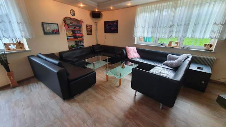 Die Ferienwohnung besteht aus 10 separaten Schlafzimmern, einem Wohnzimmer, einer voll ausgestatteten Küche sowie 10 Badezimmern.