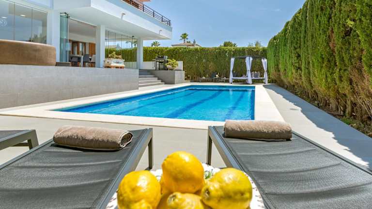 Das Ferienhaus verfügt über 4 Schlafzimmer, ein Wohnzimmer und eine voll ausgestattete Küche mit Kühlschrank und Kaffeemaschine. Es sind 2 Badezimmer vorhanden, die jeweils mit einer Dusche und einem Whirlpool ausgestattet sind. Handtücher und Bettwäsche werden zur Verfügung gestellt. Zudem bietet die Unterkunft eine Terrasse und einen Grill.