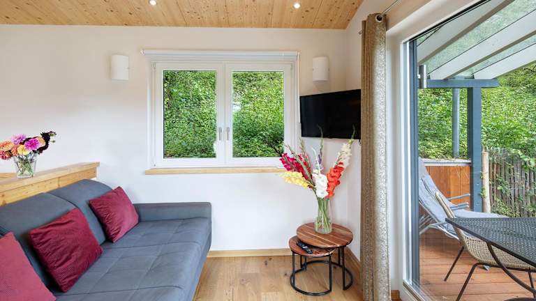 Das Ferienhaus bietet eine Ferienwohnung mit einer Terrasse und Flussblick, die über 1 Schlafzimmer, ein Wohnzimmer, einen TV und eine gut ausgestattete Küche mit Kühlschrank und Geschirrspüler verfügt. Das Badezimmer ist mit einer Dusche ausgestattet, und Handtücher sowie Bettwäsche werden zur Verfügung gestellt.