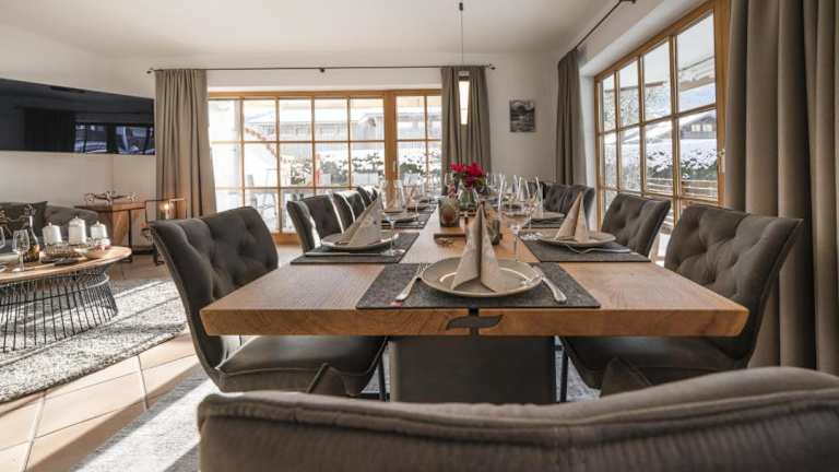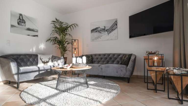 Das Ferienhaus bietet Platz in 4 Schlafzimmern sowie in einem Wohnzimmer mit TV. Es gibt eine gut ausgestattete Küche mit Kühlschrank und Geschirrspüler, sowie 2 Badezimmer mit Dusche. Balkon und Bergblick ergänzen die Ausstattung, und für die Bequemlichkeit werden Handtücher und Bettwäsche bereitgestellt.