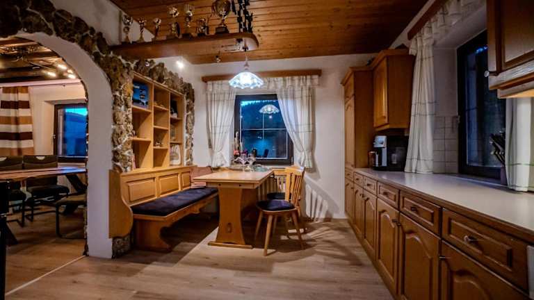 Das Ferienhaus ist mit einer voll ausgestatteten Küche versehen, in der sich ein Kühlschrank und ein Geschirrspüler befinden. Für die Gäste steht eine Kaffeemaschine zur Verfügung, um den Morgen mit einem Kafi zu beginnen.