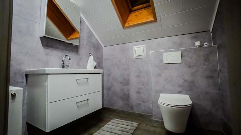 Das Ferienhaus umfasst zwei Schlafzimmer und ein Badezimmer mit Dusche. Es ist ausgestattet mit einem Flachbild-TV, einem Sitzbereich sowie Handtüchern und Bettwäsche. Die Ausstattung gewährleistet eine angenehme Bequemlichkeit für die Gäste.
