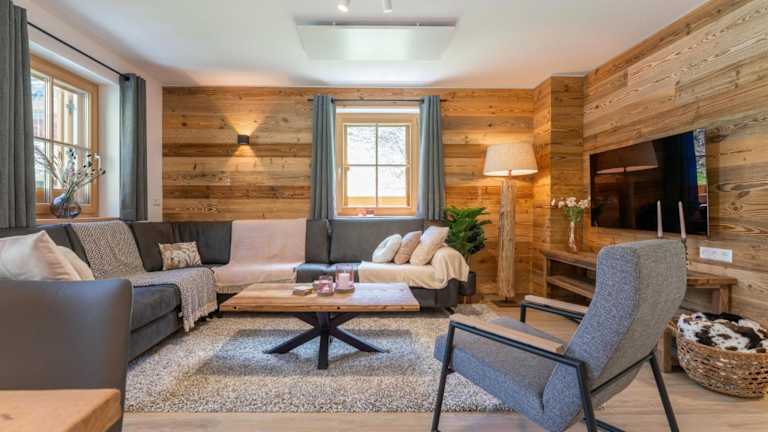 Das Chalet umfasst 4 Schlafzimmer, ein Wohnzimmer sowie eine gut ausgestattete Küche mit Kühlschrank und Geschirrspüler. Handtücher und Bettwäsche werden bereitgestellt.
