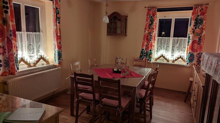 Das Ferienhaus Ferien am Waldrand ist ein privates Ferienhaus, das aus zwei Schlafzimmern, einem Wohnzimmer sowie einer voll ausgestatteten Küche besteht. Es bietet eine gemütliche Atmosphäre und einen Garten zur Erholung. Die Unterkunft wird von einem privaten Gastgeber geführt und das Minimum Alter für den Check-in beträgt 18 Jahre.