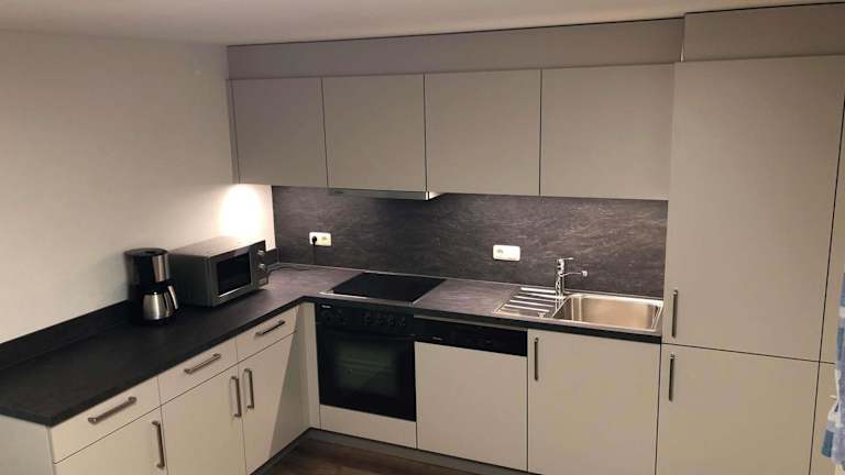 Die Unterkunft verfügt über eine gut ausgestattete Küche mit Kühlschrank, Geschirrspüler, Ofen, Kaffeemaschine und Wasserkocher, die zur Selbstverpflegung einlädt.