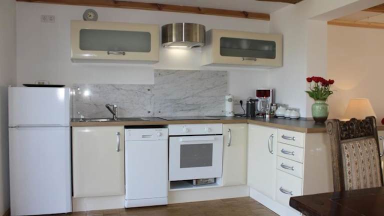Das Ferienhaus verfügt über zwei Schlafzimmer und ist ausgestattet mit einem Flachbild-TV mit Satellitenkanälen. Die voll ausgestattete Küche bietet den Gästen sämtliche Bequemlichkeiten, darunter einen Kühlschrank, einen Geschirrspüler, eine Waschmaschine, einen Ofen sowie eine Herdplatte.