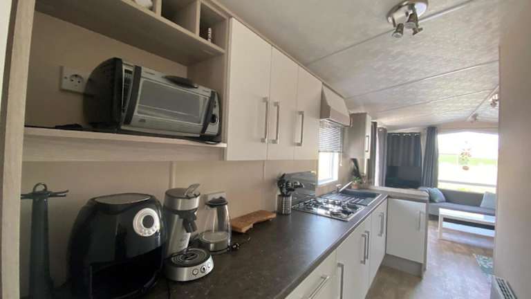 Das Ferienhaus enthält eine Küchenzeile mit Kühlschrank, Herdplatte, Toaster und Wasserkocher, was die Zubereitung eigener Mahlzeiten ermöglicht. Plätze für gastronomische Angebote sind in der näheren Umgebung vorhanden.