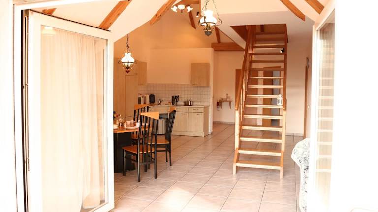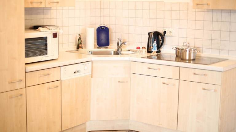 Eine voll ausgestattete Küchenzeile ermöglicht es den Gästen, ihre eigenen Mahlzeiten zuzubereiten. Diese bietet unter anderem einen Kühlschrank, einen Geschirrspüler, eine Mikrowelle, eine Herdplatte, eine Kaffeemaschine sowie einen Wasserkocher.