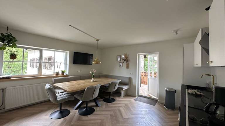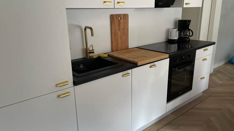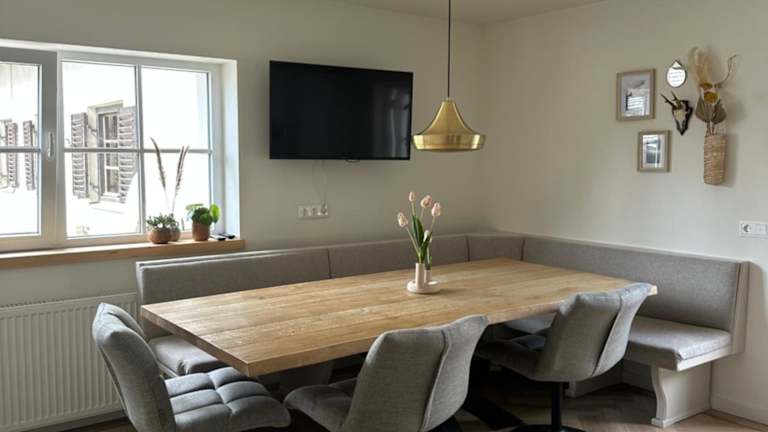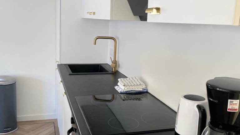 Einige Wohneinheiten im Ferienhaus Goldene Zehn bieten eine voll ausgestattete Küche mit Kühlschrank, Geschirrspüler und Ofen. Zudem steht eine Terrasse zur Verfügung, die zu entspannten Stunden einlädt.