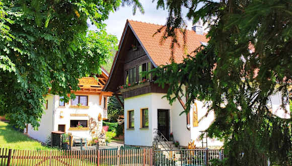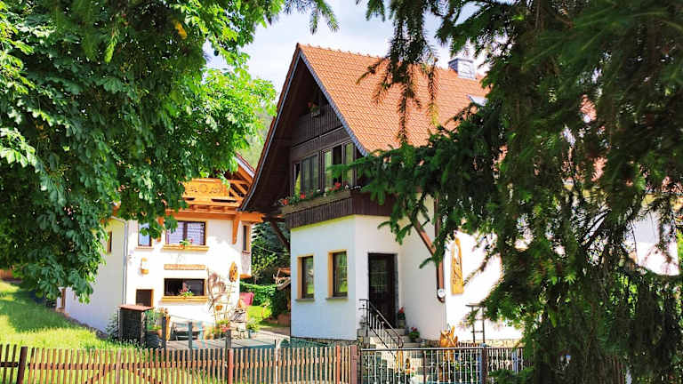 Die Unterkunft "Haus Ulla" ist gelegen in Bad Blankenburg, umgeben von einer idyllischen Landschaft mit Bergblick. In der Umgebung befinden sich zahlreiche Wander- und Velowege, die zur Erkundung der Natur einladen.
