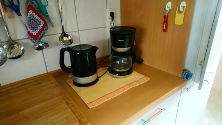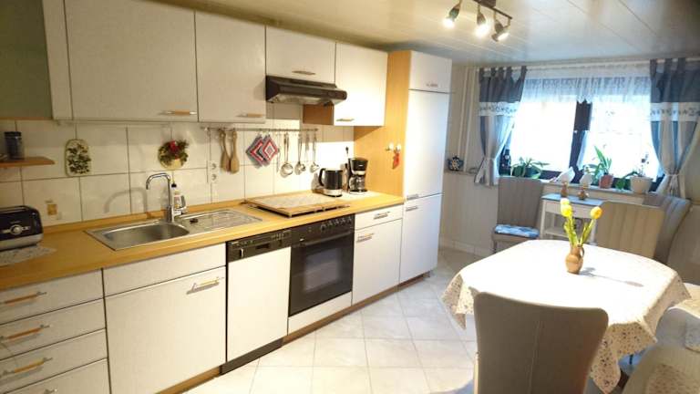 In der gut ausgestatteten Küche der Ferienwohnung können Gäste ihre eigenen Mahlzeiten zubereiten. Es besteht die Möglichkeit, Essenslieferungen in die Unterkunft zu erhalten.