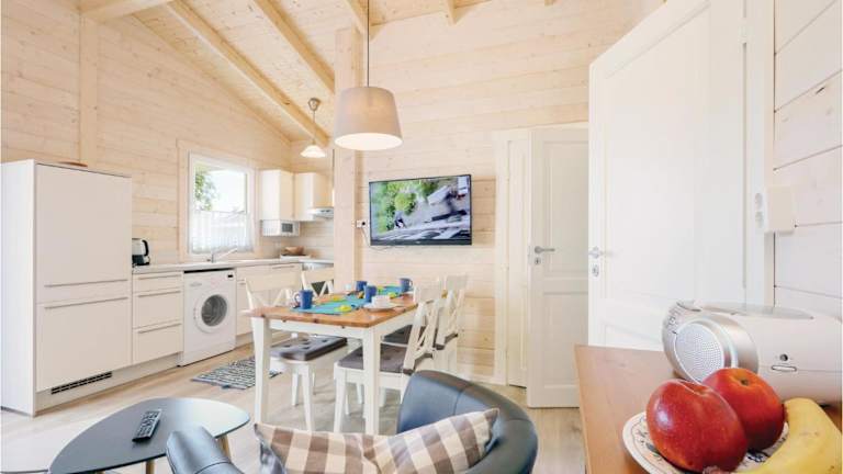 Das Ferienhaus bietet zwei Schlafzimmer, ein Badezimmer mit Dusche, ein Wohnzimmer, einen Essbereich sowie einen TV und einen DVD-Player. Eine Parkiermöglichkeit vor Ort ist vorhanden.