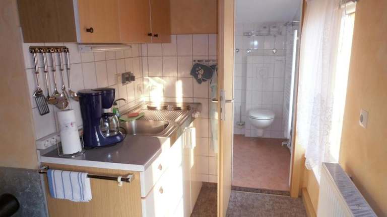 Das Ferienhaus beinhaltet eine voll ausgestattete Küche mit Kühlschrank, Herdplatte, Toaster, Kaffeemaschine und Wasserkocher, was die Zubereitung eigener Mahlzeiten ermöglicht.