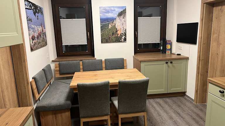 Die Unterkunft bietet 2 Schlafzimmer und 1 Badezimmer, ausgestattet mit Bettwäsche und Handtüchern. Es gibt einen Flachbild-TV sowie einen Essbereich. Die voll ausgestattete Küche ermöglicht die Zubereitung eigener Mahlzeiten. Eine Terrasse mit herrlichem Bergblick lädt zum Entspannen ein.