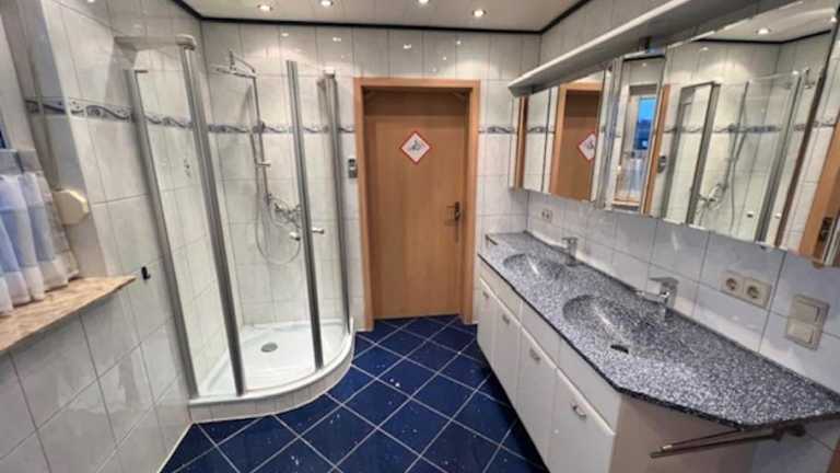 Das Ferienhaus umfasst 5 Schlafzimmer, ein Wohnzimmer und 3 Badezimmer mit einer Dusche. Ein TV ist ebenfalls vorhanden.