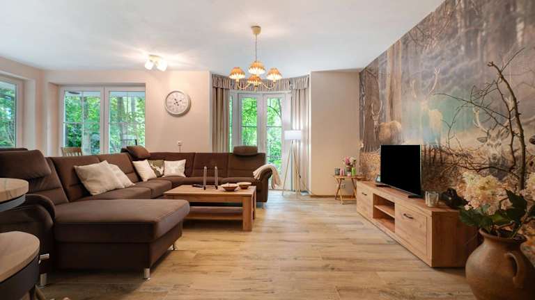 Das Ferienhaus im Grünen befindet sich in Harsefeld, in der Nähe des Flughafens Hamburg, der etwa 58 km entfernt ist. Die Umgebung bietet vielfältige Möglichkeiten zur Naturerfahrung und Erholung.