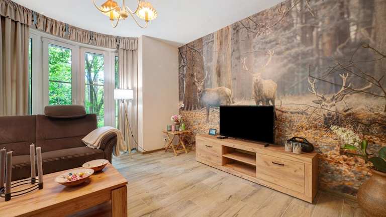 Das Ferienhaus im Grünen bietet Übernachtungsmöglichkeiten mit kostenlosem WLAN und einem Balkon. Die Unterkunft ist mit drei Schlafzimmern, einem Badezimmer, Bettwäsche und Handtüchern sowie einem Fernseher mit Satellitenkanälen ausgestattet. Zudem steht eine voll ausgestattete Küche zur Verfügung.
