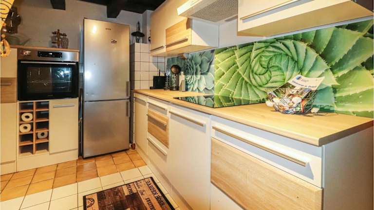 Das Ferienhaus verfügt über eine voll ausgestattete Küche mit Kühlschrank und Geschirrspüler, wodurch die Zubereitung von eigenen Mahlzeiten einfach möglich ist. Es sind jedoch keine speziellen Verpflegungsangebote wie Restaurants oder Frühstück enthalten.