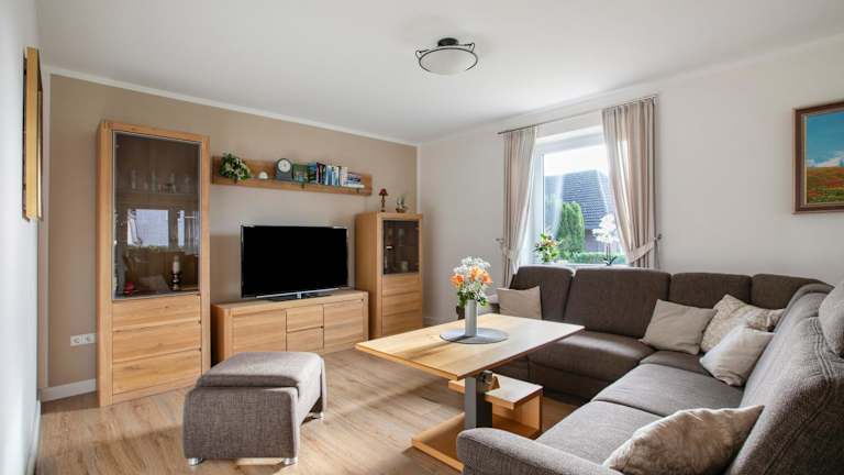 Das Ferienhaus verfügt über 3 heimelige Schlafzimmer, einen TV mit Satellitenkanälen sowie eine gut ausgestattete Küche mit Kühlschrank und Geschirrspüler. Es sind 2 Badezimmer mit Dusche vorhanden. Handtücher und Bettwäsche werden bereitgestellt.