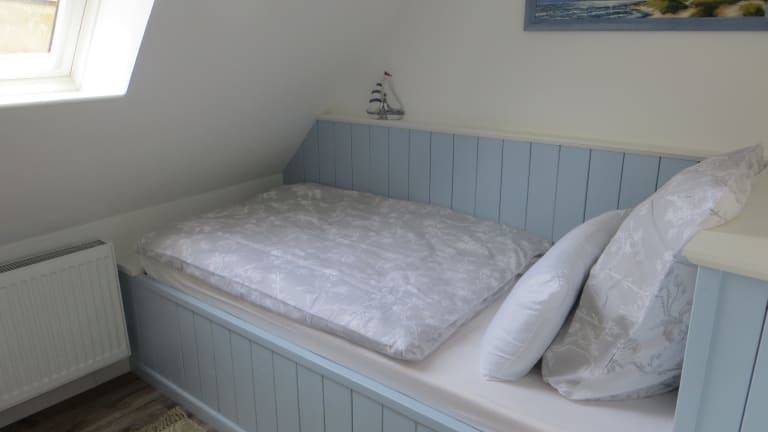 Das Ferienhaus wurde in 2017 innen & außen professionell komplett saniert und renoviert. Entstanden ist ein 110m² großes, gemütliches Ferienhaus mit hellen und geräumigen Räumen auf 3 Etagen. Es gibt 3 Schlafzimmer für 4 Personen (2 Einzelzimmer + 1 Doppelzimmer) sowie 2 Badezimmer. Desweiteren verfügt das Haus u.a. über eine Küche, ein Eßzimmer sowie ein Wohnzimmer. Außerdem gehört auch noch eine kleine Terrasse zum Haus, Folgende Ausstattung gehört u.a. zum Haus: - Tresor - Waschmaschine - Wäschetrockner - Geschirrspüler - Babybett (auf Anfrage) - Fön - Kaminofen - 3 Fernseher - DVD-Player