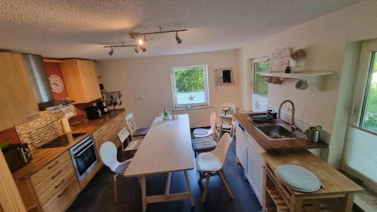 Das Ferienhaus Käthchen bietet eine heimelige Atmosphäre mit moderner Ausstattung. Es ist mit 4 Schlafzimmern, einer voll ausgestatteten Küchenzeile, sowie 2 Badezimmern, die mit einer Dusche und einem Whirlpool versehen sind, ausgestattet. Zur Entspannung stehen den Gästen eine Terrasse, eine Sauna und ein Whirlpool zur Verfügung.