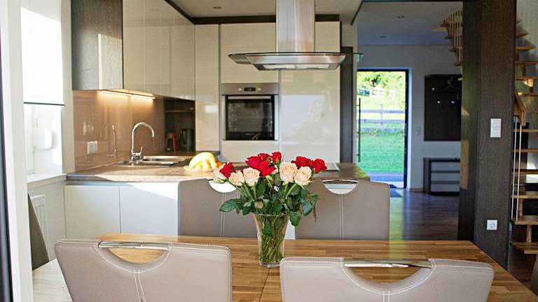 Unsere Ferienhäuser befinden sich auf einer Anhöhe in südseitiger, sehr sonniger Lage ohne Durchgangsstrasse im Süd Kärntner Seengebiet, wenige Autominuten zu den wärmsten Badeseen Europas. Bei uns ist es sehr kinderfreundlich mit einem wunderschönen Rundblick. 8-10 Autominuten zum Klopeiner- und Turnersee, 15 Autominuten zum Sonnegger- und Gösselsdorfersee, Reiten auf Islandpferden ca. 10 Gehminuten entfernt, 2 km zum Drauradweg, ideale Gegend zum Wandern, Spazieren, Nordic Walking und Radfahren, verschiedene Fischereireviere in der Nähe, ca. 5 km zur grössten Paintballarena Europas. Unsere Lage im Südkärntner Seen- und Erholungsgebiet nahe der slowenischen Grenze ermöglicht Ihnen: • Schwimmen und Baden in den wärmsten und reinsten Seen Europas (für unsere Hausgäste, in einem Strandbad am Turnersee gratis) • Wandern, Spazieren und Walken in grandioser Natur, mit allen Schwierigkeitsgraden von 400m - 2142m (Hochobir) • sowie viele andere Freizeitaktivitäten bei wetterbegünstigtem mediteranem Klima.